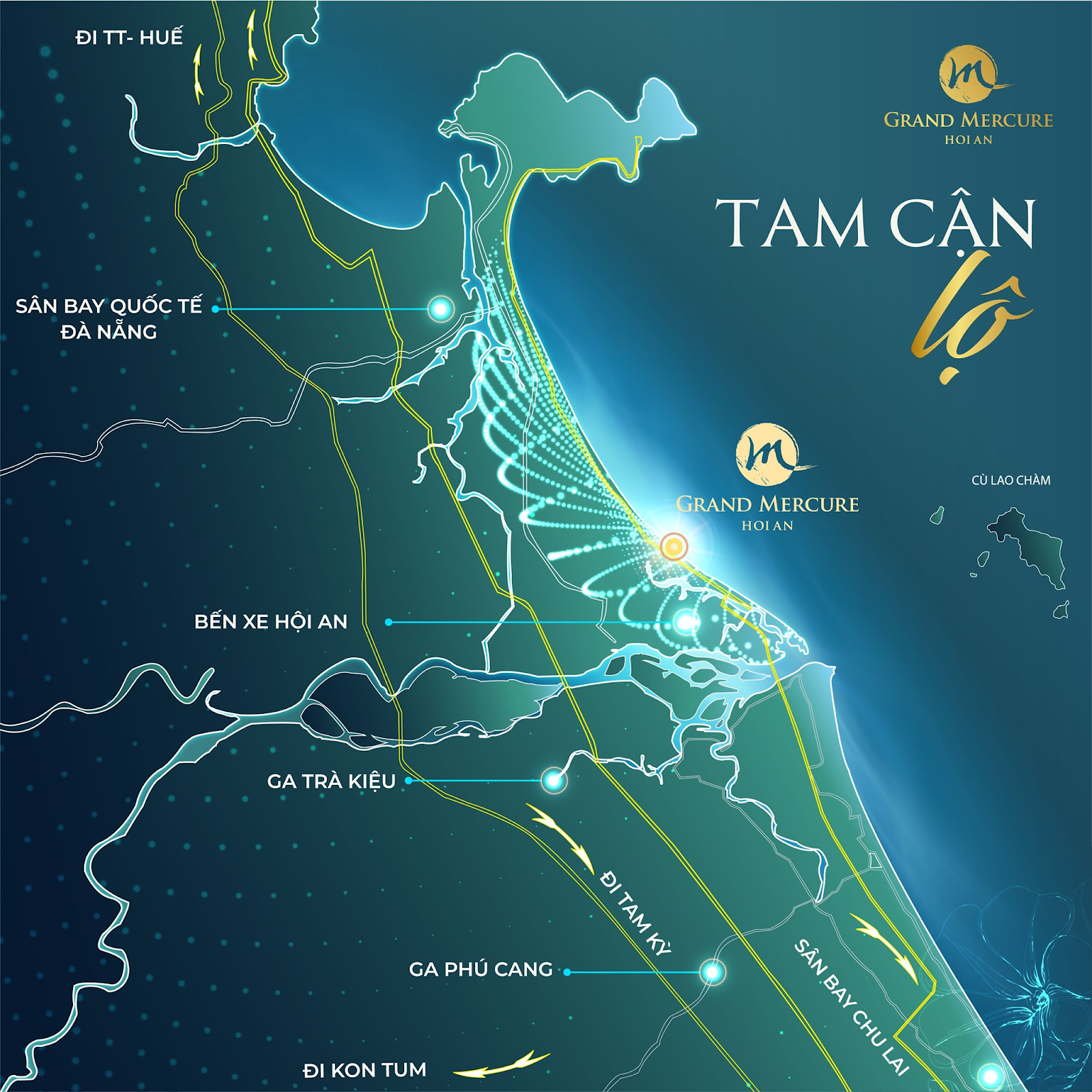 Vị trí luôn là yếu tố hàng đầu khi chọn mua Bất động sản, bởi đóng vai trò quan trọng ảnh hưởng lớn đến khả năng phát triển và sinh lời lâu dài của một dự án, đặc biệt là các dự án Bất động sản biển. Nắm giữ vị trí chiến lược ngay “tâm điểm vàng” của Hội An, Grand Mercure sẵn sàng mang đến những tiềm năng đắt giá cả về an cư và đầu tư cho các chủ nhân sở hữu.Grand Mercure Hội An tọa lại tại Khối Hà My Đông A, Phường Điện Dương, Thị xã Điện Bàn, Tỉnh Quảng Nam. Với vị trí biển đẹp nhất biển An Bàng, Grand Mercure Hội An kết nối và di chuyển dễ dàng tới các điểm du lịch nổi tiếng lân cận.