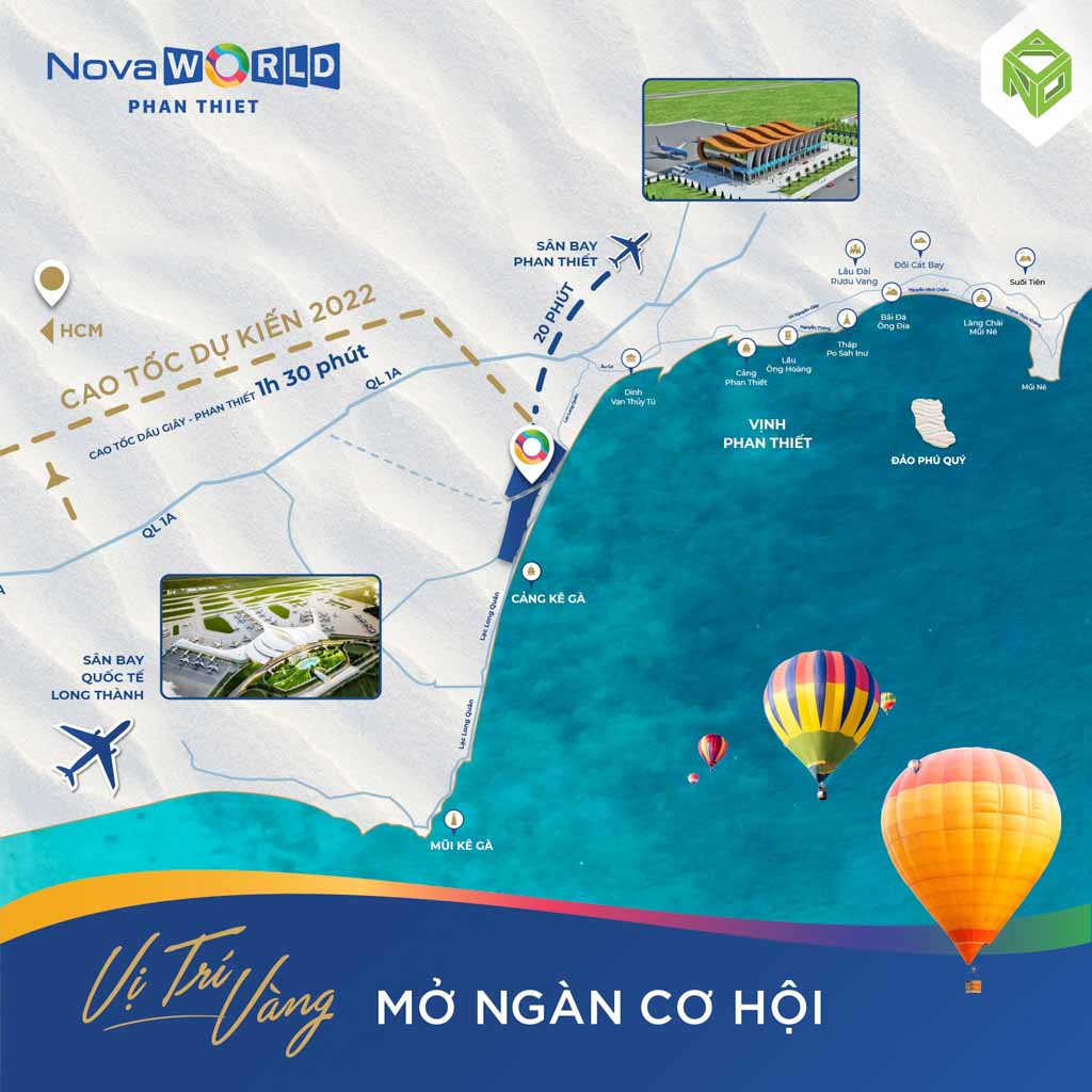 Novaworld Phan Thiết là dự án đại đô thị được quy hoạch trở thành nơi nghỉ dưỡng – giải trí – thương mại đầu tiên từ chủ đầu tư Novaland. Dự án có vị trí đặc địa khi nằm tại xã Tiến Thành, Phan Thiết, Bình Thuận. Điểm nhấn tạo nên sức hút khiến nhiều nhà đầu tư quan tâm về dự án Novaworld chính là quy mô cực lớn, diện tích quy hoạch lên đến 1000ha. Tiềm năng tăng giá được giới chuyên gia bất động sản đánh giá cao. Dự án đang là một trong những khu bất động sản đáng đầu tư nhất 2022.