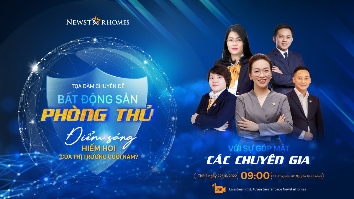 Sáng ngày 22/10/2022; tại CT1, Ecogreen City, 286 Nguyễn Xiển, Hà Nội, Công ty Cổ phần Tập đoàn Đầu tư NewstarHomes đã tổ chức thành công tọa đàm “Bất động sản phòng thủ: Điểm sáng hiếm hoi của thị trường cuối năm?”. Tham gia chương trình có mặt của các chuyên gia, những người trực tiếp lên chiến lược và theo sát tình hình thị trường để có những định hướng và điều chỉnh phù hợp nhất.